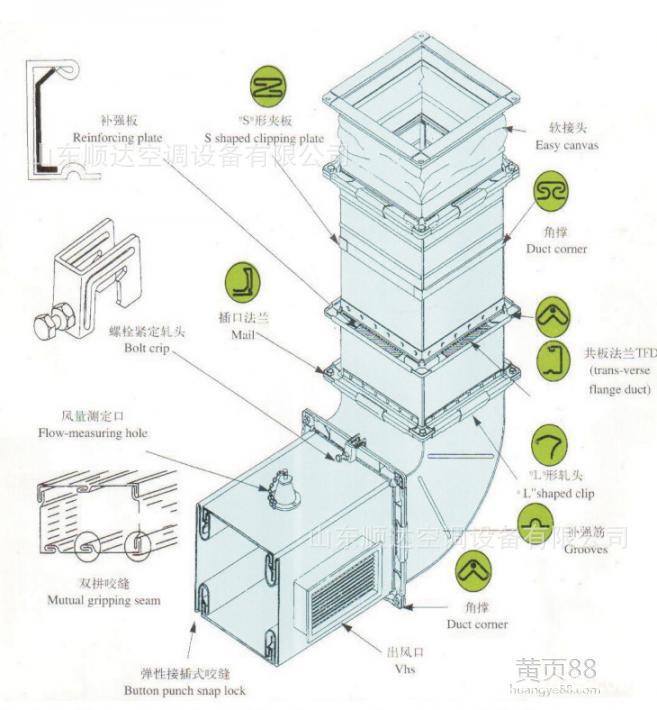 法蘭角由模具直接沖壓成型,安裝時(shí)卡在四個(gè)角即可。